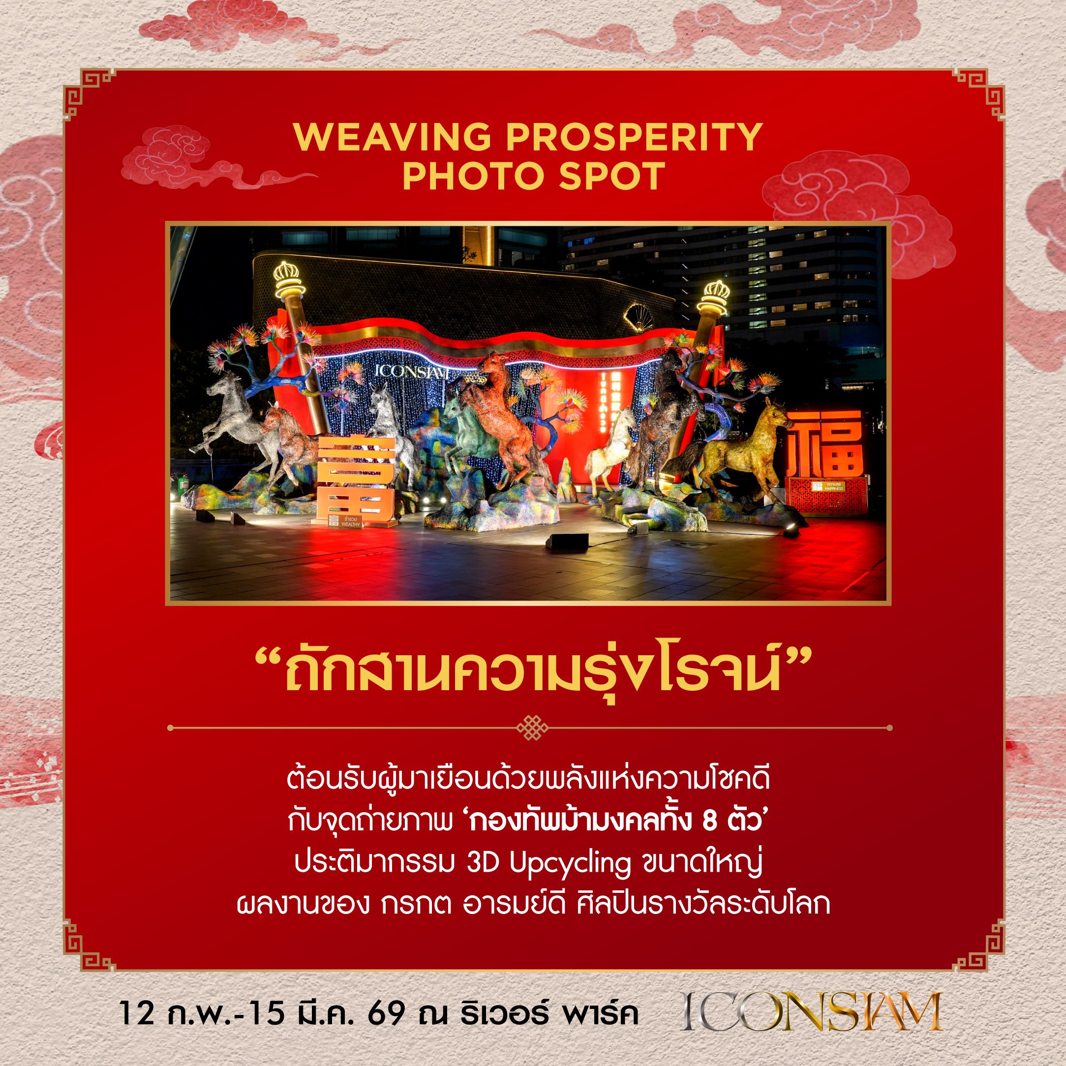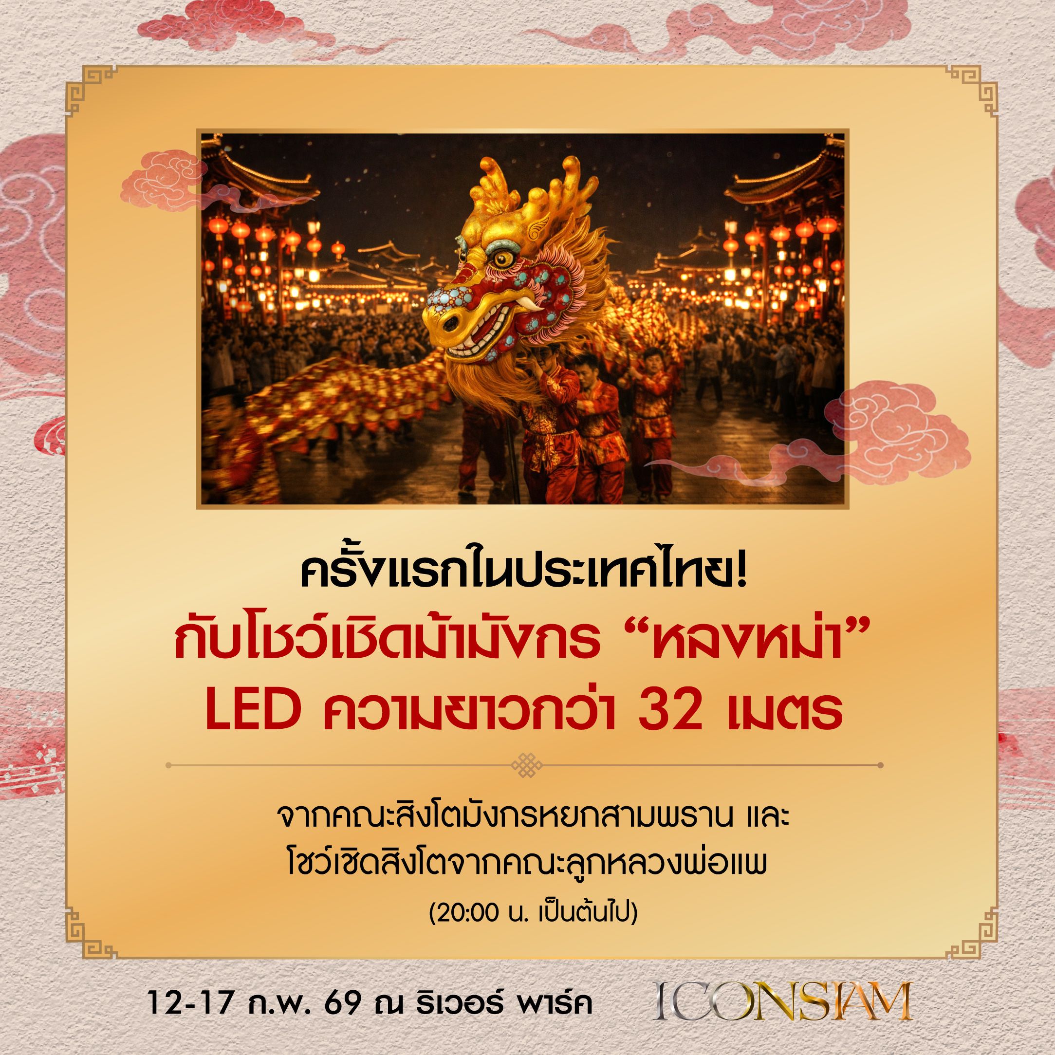 ตรุษจีน 2569 ไอคอนสยามในฐานะแลนด์มาร์กระดับโลก พร้อมกับอีกหนึ่งบทบาทสำคัญ Global Experiential Destination ผนึกกำลังพันธมิตรภาครัฐและเอกชน ได้แก่ กระทรวงวัฒนธรรม การท่องเที่ยวแห่งประเทศไทย ธนาคารกสิกรไทย ซีพี แอ็กซ์ตร้า Alipay และ Tiger Balm เปิดฉากมหาปรากฏการณ์ฉลองตรุษจีนปีมะเมีย “ICONSIAM A PROSPEROUS CHINESE NEW YEAR 2026” ภายใต้คอนเซ็ปต์ “อาชาเรืองรอง เงินทองมากมี มั่งคั่งตลอดปี” ต่อเนื่องตั้งแต่ 12-17 ก.พ. 69