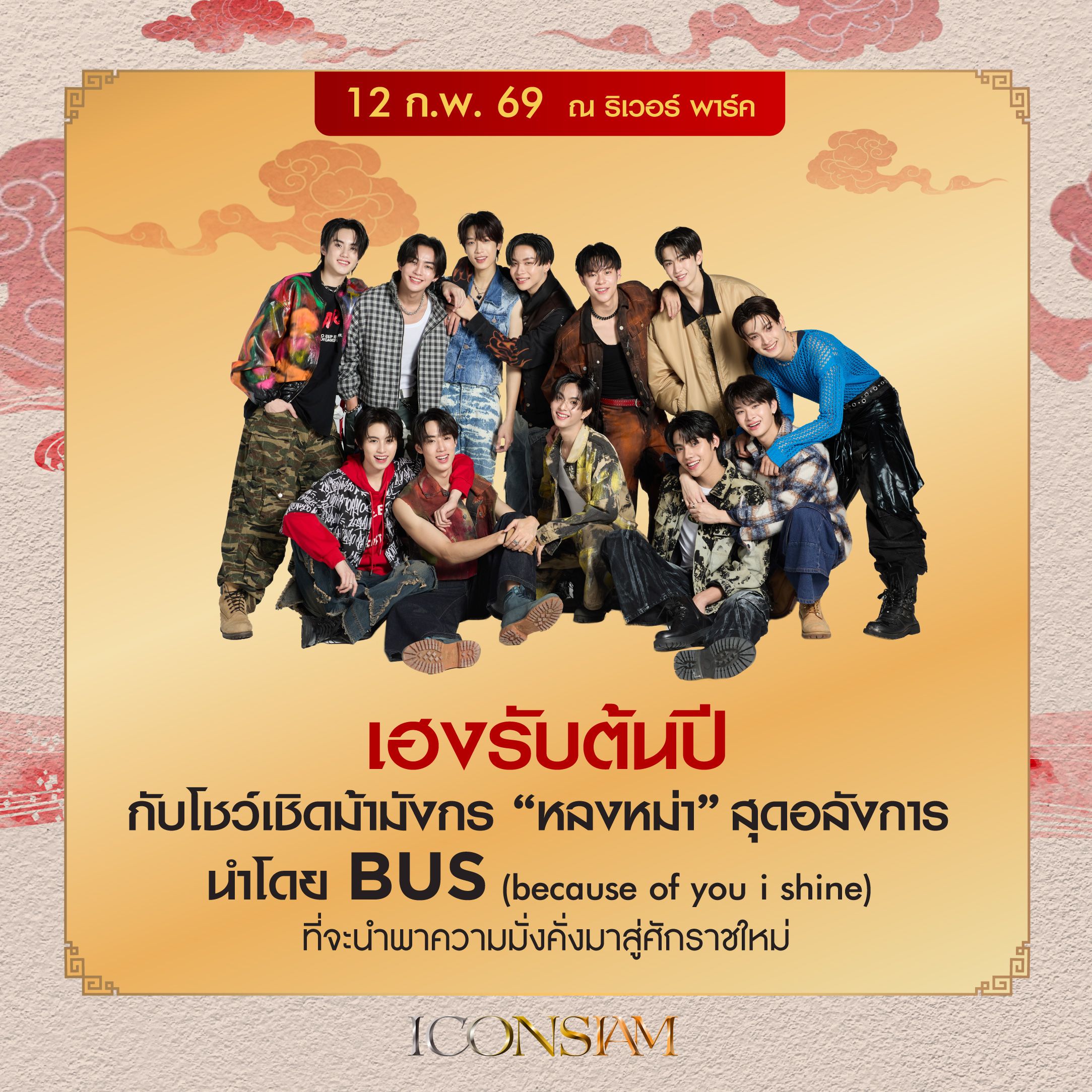 วันที่ 12 กุมภาพันธ์ 2569 เปิดฉากความยิ่งใหญ่กับศิลปิน T-POP แถวหน้าของเมืองไทย BUS because of you i shine ที่จะมาสร้างปรากฏการณ์ความสนุกสุดพลังในธีม “The Auspicious Pearl” ไข่มุกอัคนีมหามงคล เวลา 18.55 น. เป็นต้นไป
