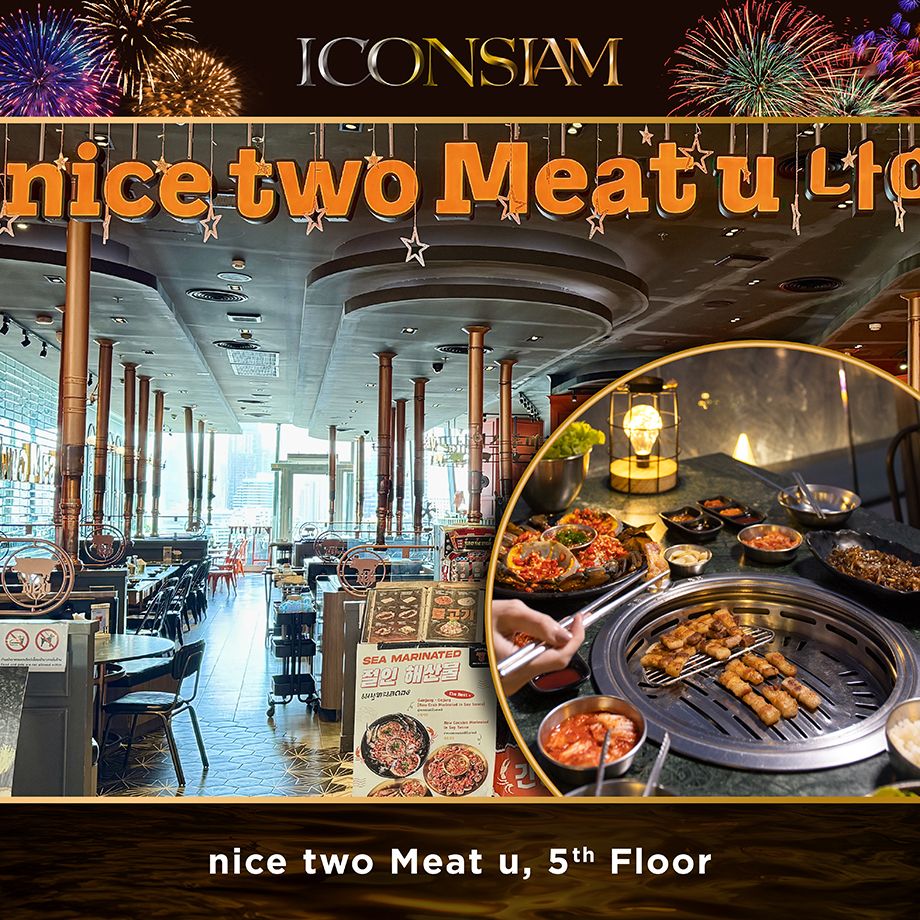 สาขาไอคอนสยามพิเศษกว่าที่อื่นด้วยคอนเซป nice two Meat u on Cruise ผ่านโซนเอาต์ดอร์ที่มีทำเลการปิ้งย่างขนานไปกับริมแม่น้ำเจ้าพระยาจนได้ความรู้สึกเหมือนได้กินข้าวบนเรือสำราญ คึกคัก และมีชีวิตชีวา ให้บริการทั้งเนื้อหมูและเนื้อวัวที่นุ่มจนละลายในปาก