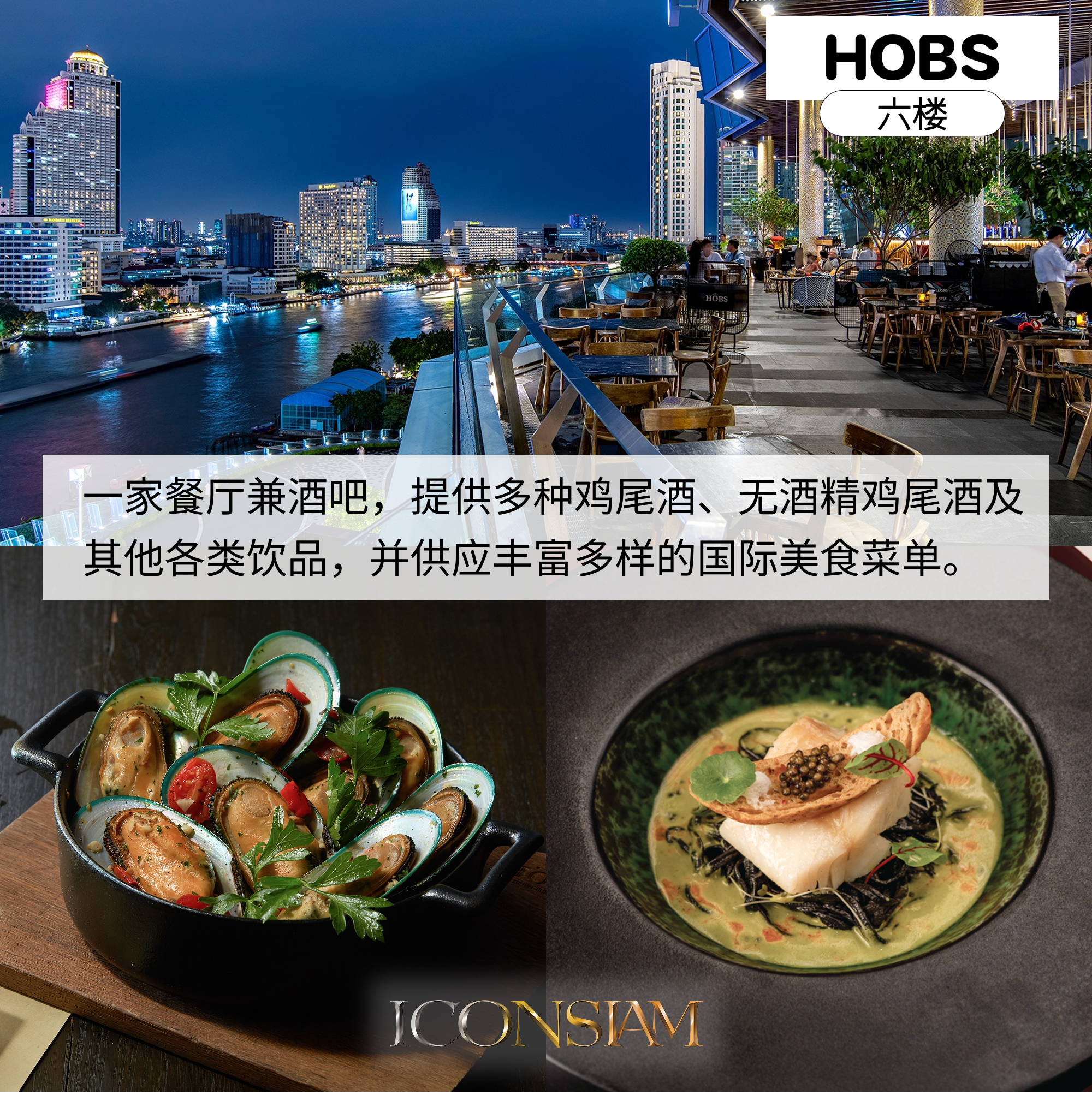 Hobs —— 餐厅兼酒吧,提供丰富的鸡尾酒、无酒精饮品及多样化的国际美食菜单